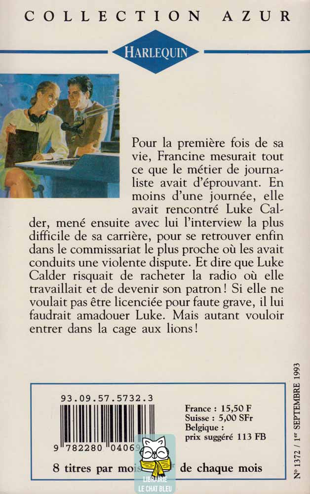 Pour la première fois de sa vie, Francine mesurait tout ce que le métier de journaliste avait d’éprouvant. En moins d’une journée, elle avait rencontré Luke Calder, mené ensuite avec lui l’interview la plus difficile de sa carrière, pour se retrouver enfin dans le commissariat le plus proche où les avait conduits une violente dispute. Et dire que Luke Calder risquait de racheter la radio où elle travaillait et de devenir son patron ! Si elle ne voulait pas être licenciée pour faute grave, il lui faudrait amadouer Luke. Mais autant vouloir entrer dans la cage aux lions !