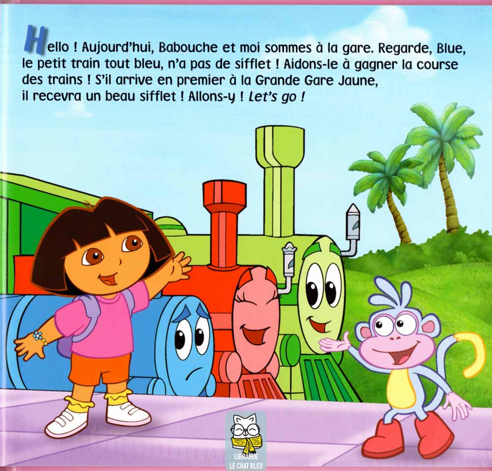 Blue rêve de remporter la course des trains et de gagner un joli sifflet. Pour qu’il arrive à temps à la Grande Gare Jaune, Dora a besoin de toi : soulève les transparents pour les aider à grimper la montagne, à franchir le tunnel et… à compter !