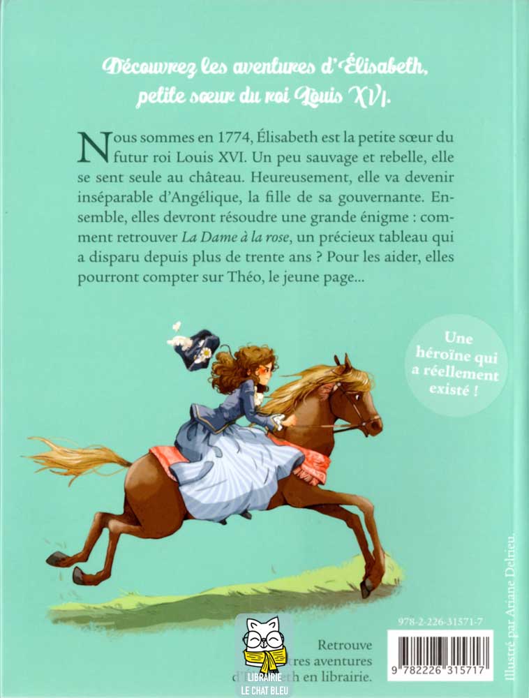 Nous sommes en 1774, Élisabeth est la petite soeur du futur roi Louis XVI. Un peu sauvage et rebelle, elle se sent seule au château. Heureusement, elle va devenir inséparable d’Angélique, la fille de sa gouvernante. Ensemble, elles devront résoudre une grande énigme : comment retrouver La Dame à la rose, un précieux tableau qui a disparu depuis plus de trente ans ? Pour les aider, elles pourront compter sur Théo, le jeune page…