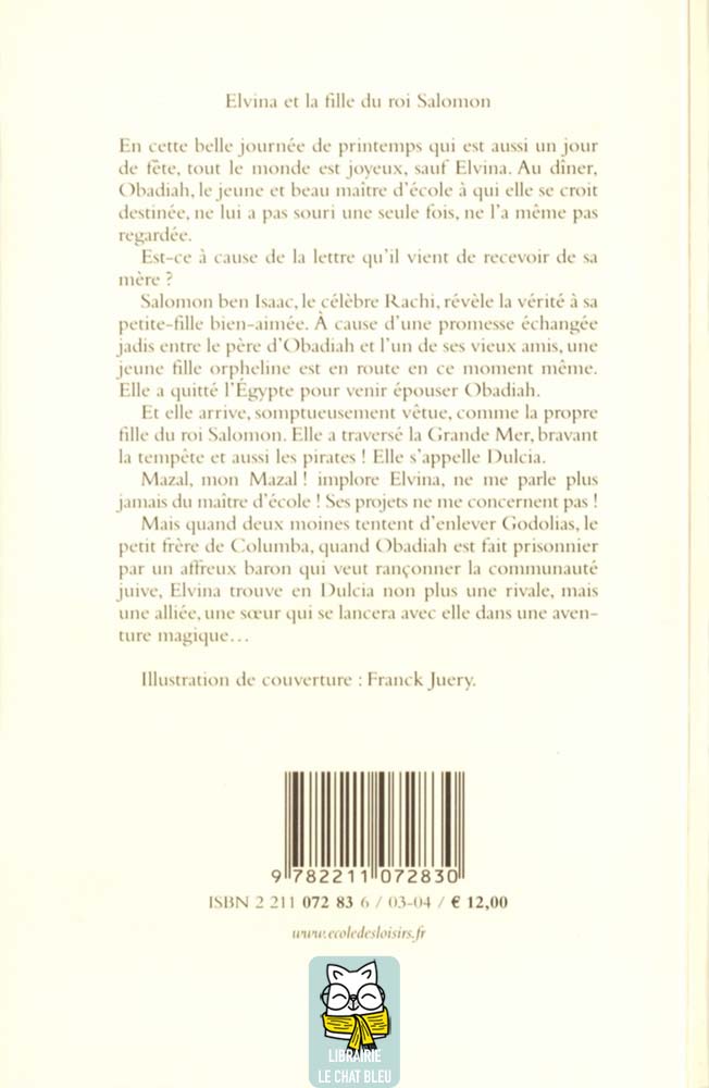 Mais quand deux moines tentent d’enlever Godolias, le petit frère de Columba, quand Obadiah est fait prisonnier par un affreux baron qui veut rançonner la communauté juive, Elvina trouve en Dulcia non plus une rivale, mais une alliée, une soeur qui se lancera avec elle dans une aventure magique…