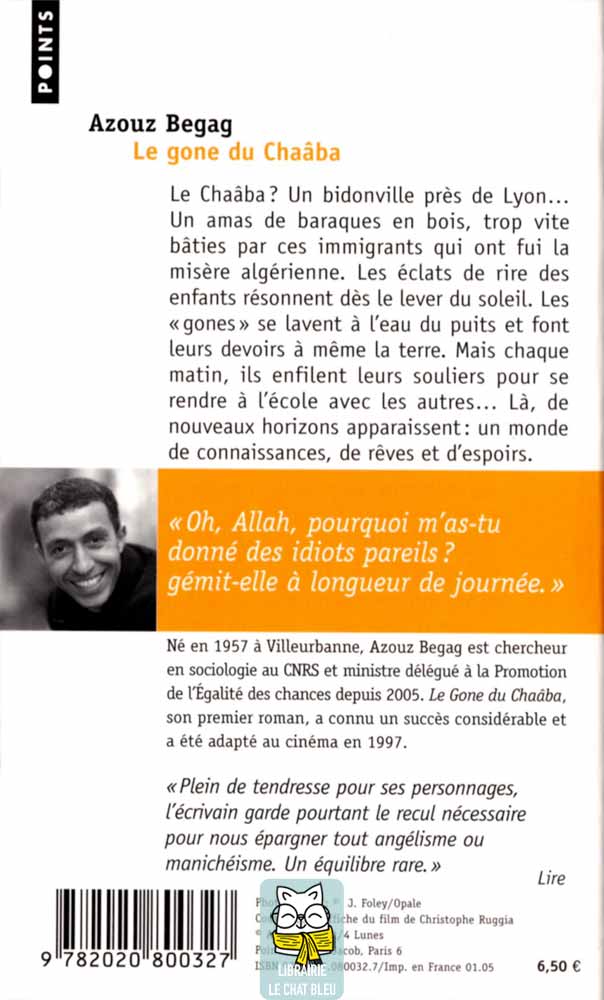 Né en 1957 à Villeurbanne, Azouz Begag est chercheur en sociologie au CNRS et ministre délégué à la Promotion de l’Égalité des chances depuis 2005. Le Gone du Chaâba, son premier roman, a connu un succès considérable et a été adapté au cinéma en 1997.