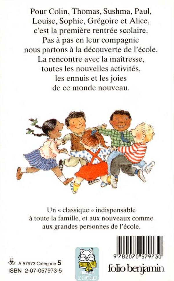 Pour Colin, Thomas, Sushma, Paul, Louise, Sophie, Grégoire et Alice, c’est la première rentrée scolaire. Pas à pas en leur compagnie nous partons à la découverte de l’école. La rencontre avec la maîtresse, toutes les nouvelles activités, les ennuis et les joies de ce monde nouveau.
