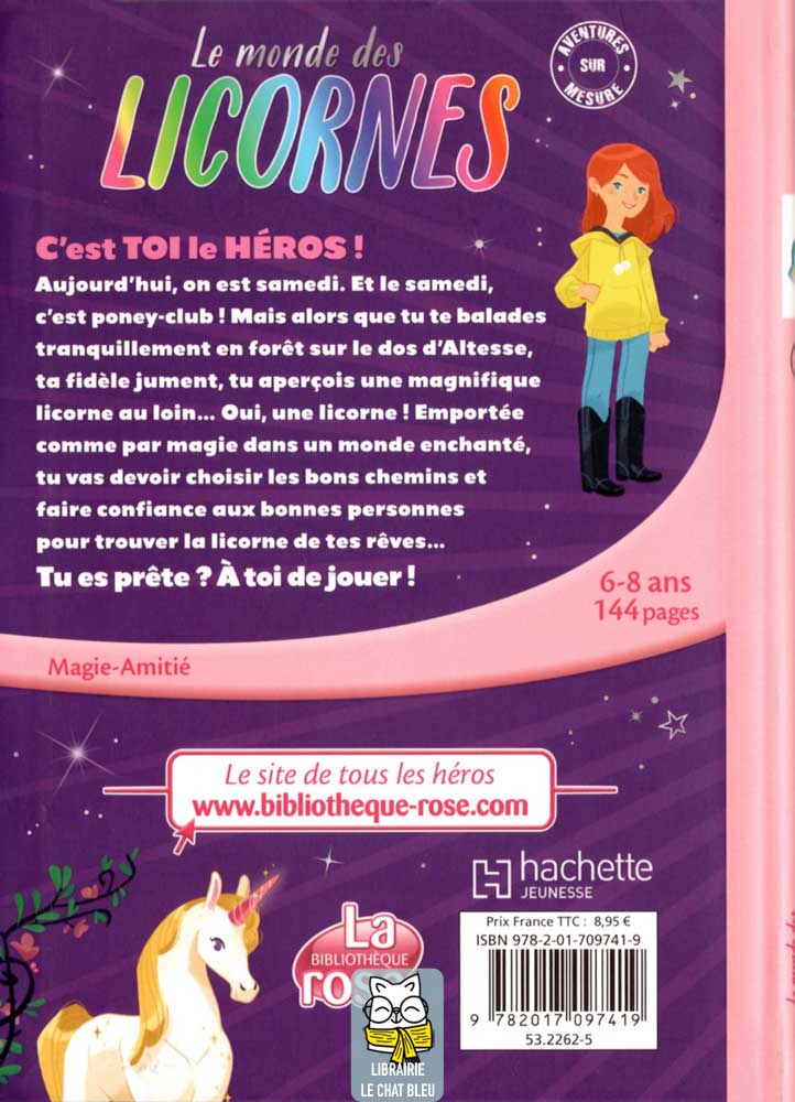 Aujourd’hui, on est samedi. Et le samedi, c’est poney-club ! Mais alors que tu te balades tranquillement en forêt sur le dos d’Altesse, ta fidèle jument, tu aperçois une magnifique licorne au loin… Oui, une licorne ! Emportée comme par magie dans un monde enchanté, tu vas devoir choisir les bons chemins et faire confiance aux bonnes personnes pour trouver la licorne de tes rêves…