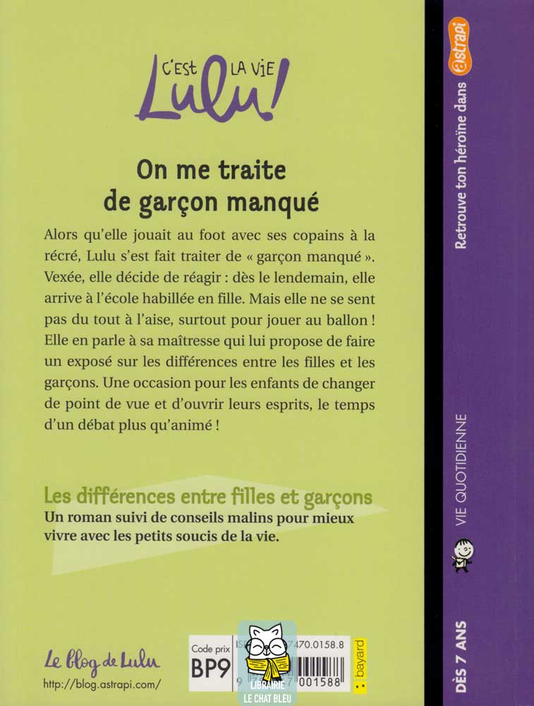 Alors qu’elle jouait au foot avec ses copains à la récré, Lulu s’est fait traiter de « garçon manqué ». Vexée, elle décide de réagir : dès le lendemain, elle arrive à l’école habillée en fille. Mais elle ne se sent pas du tout à l’aise, surtout pour jouer au ballon ! Elle en parle à sa maîtresse qui lui propose de faire un exposé sur les différences entre les filles et les garçons. Une occasion pour les enfants de changer de point de vue et d’ouvrir leurs esprits, le temps d’un débat plus qu’animé !