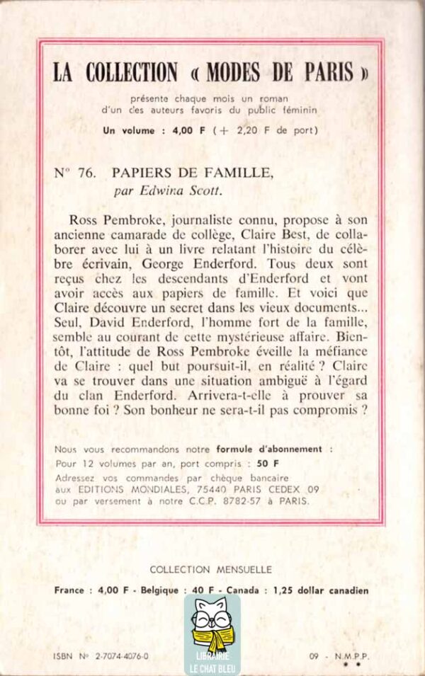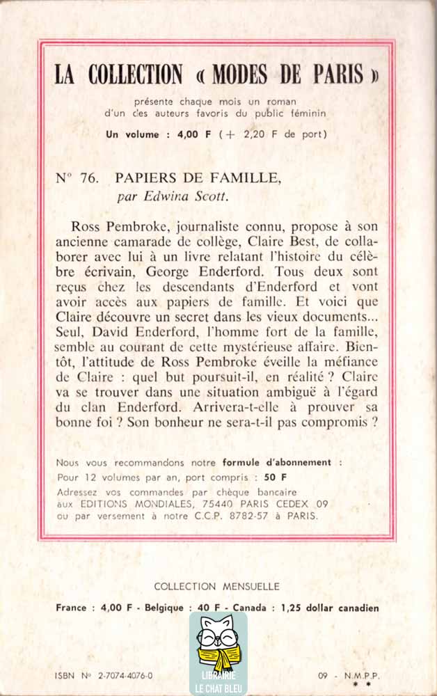 Seul, David Enderford, l’homme fort de la famille, semble au courant de cette mystérieuse affaire. Bientôt, l’attitude de Ross Pembroke éveille la méfiance de Claire : quel but poursuit-il, en réalité ? Claire va se trouver dans une situation ambiguë à l’égard du clan Enderford. Arrivera-t-elle à prouver sa bonne foi ? Son bonheur ne sera-t-il pas compromis ?